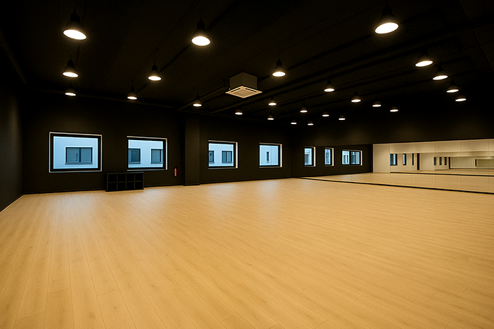 Wij hebben drie ruime danszalen, licht en stil,